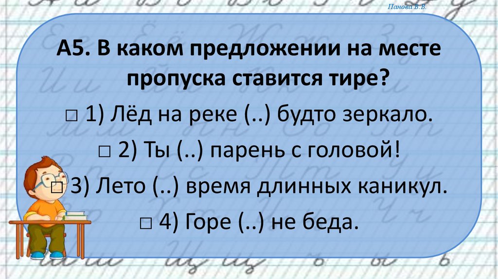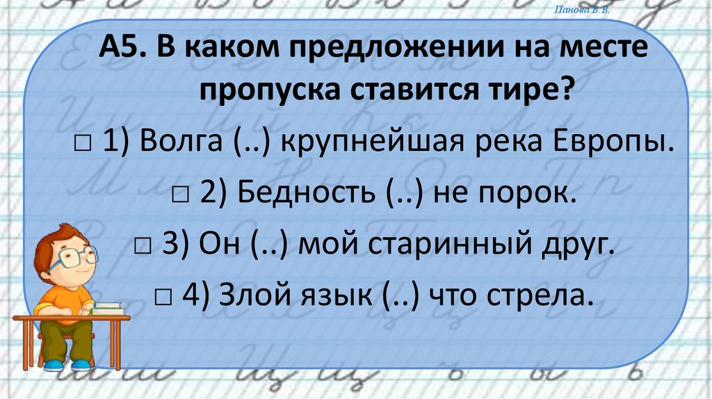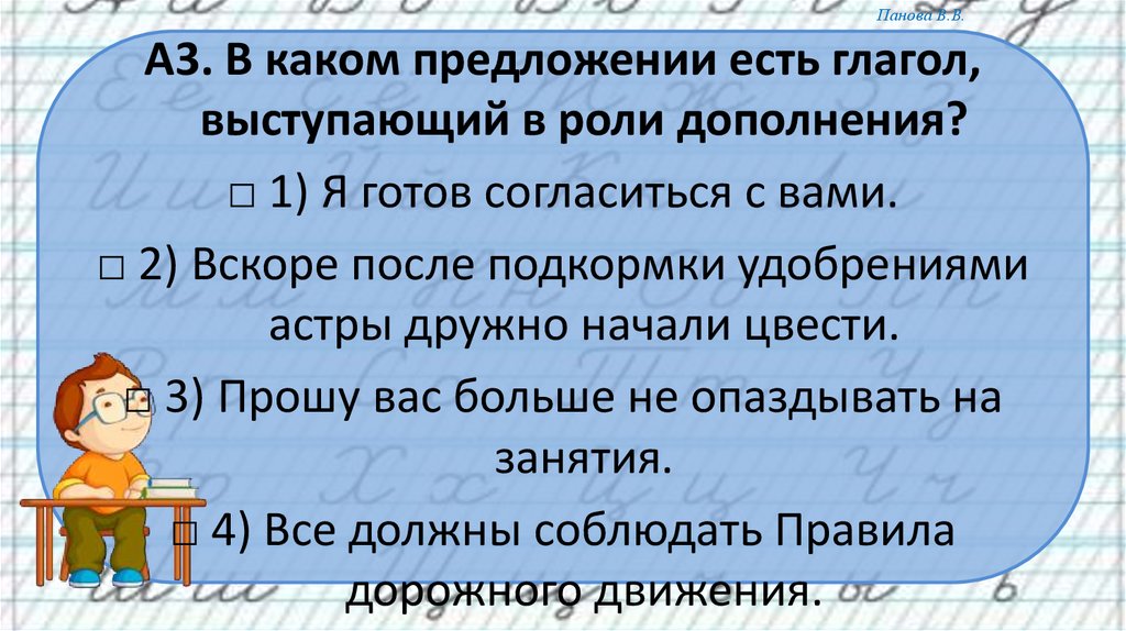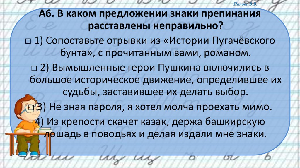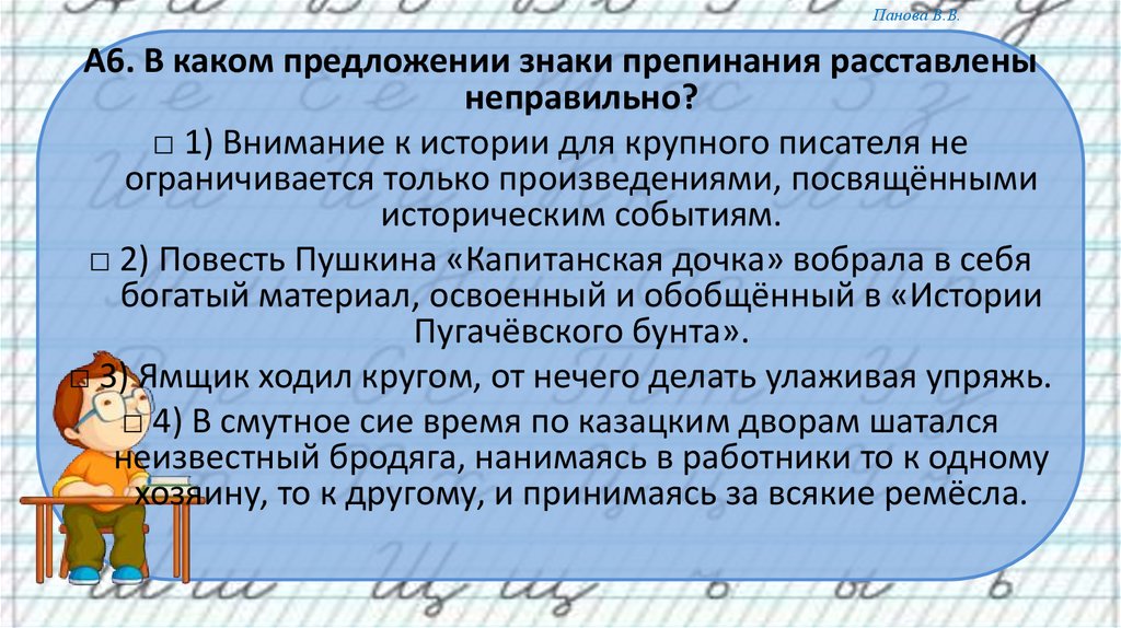 Панова В.В.А6. В каком предложении знаки препинания расставлены