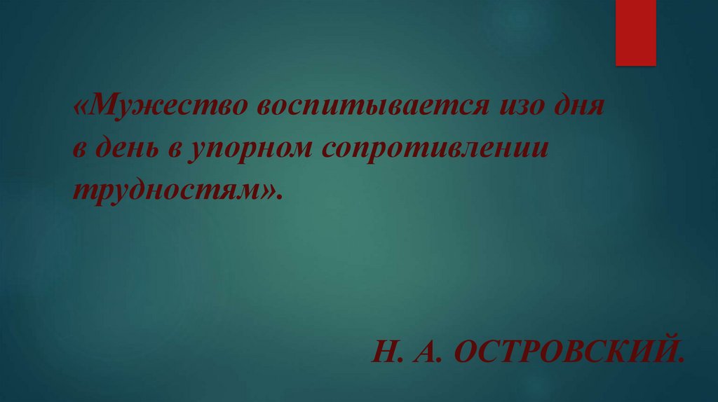 «Мужество воспитывается изо дняв день в упорном сопротивлении