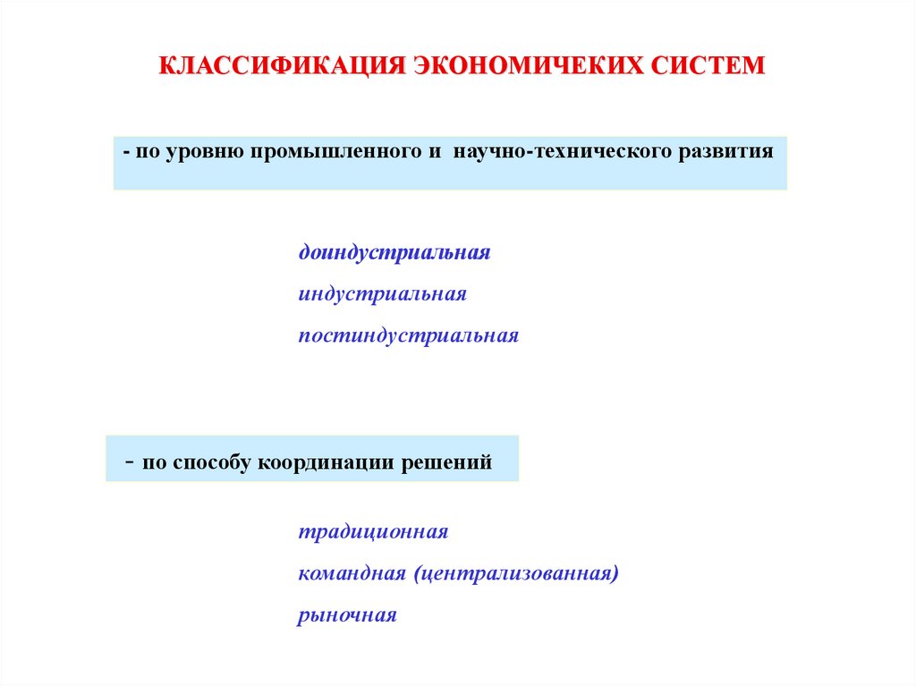 КЛАССИФИКАЦИЯ ЭКОНОМИЧЕКИХ СИСТЕМ- по уровню промышленного и научно-технического развития