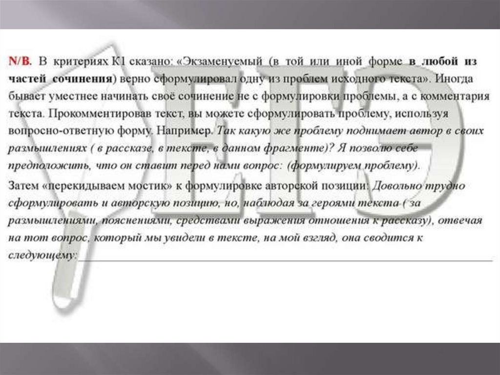 Задание № 25. Проблема исходного текста. Комментарий. Авторская позиция