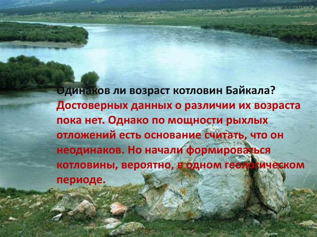 Одинаков ли возраст котловин Байкала?Достоверных данных о различии их возраста