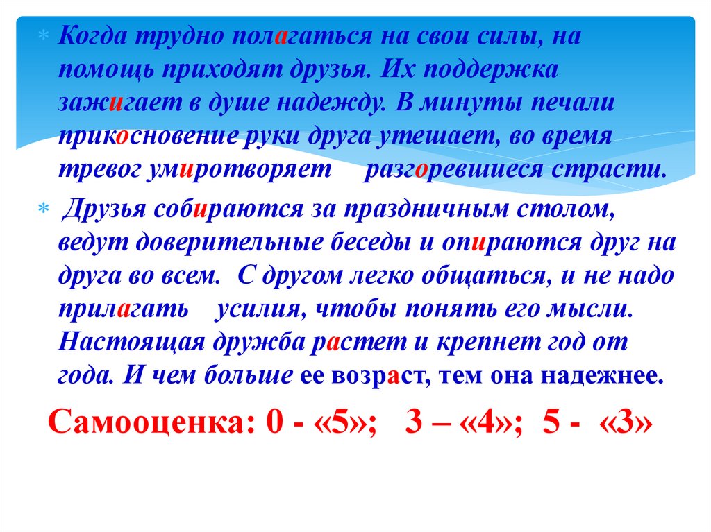 Самооценка: 0 - «5»; 3 – «4»; 5 - «3»