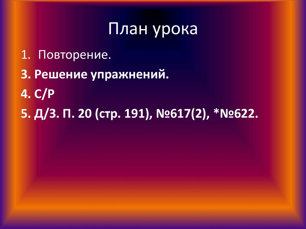 5. Д/З. П. 20 (стр. 191), №617(2), *№622.