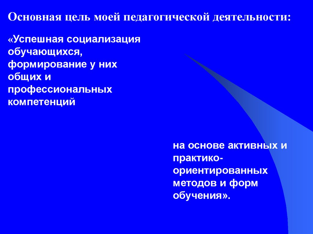 Основная цель моей педагогической деятельности:«Успешная социализация
