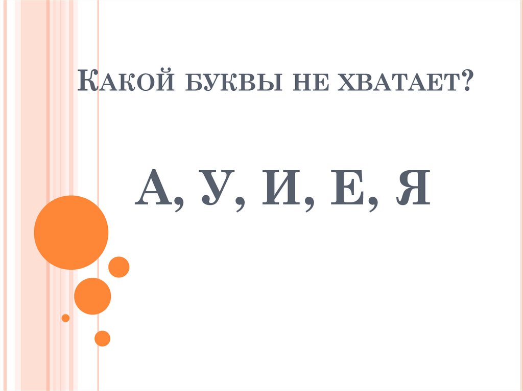 КАКОЙ БУКВЫ НЕ ХВАТАЕТ?А, У, И, Е, Я