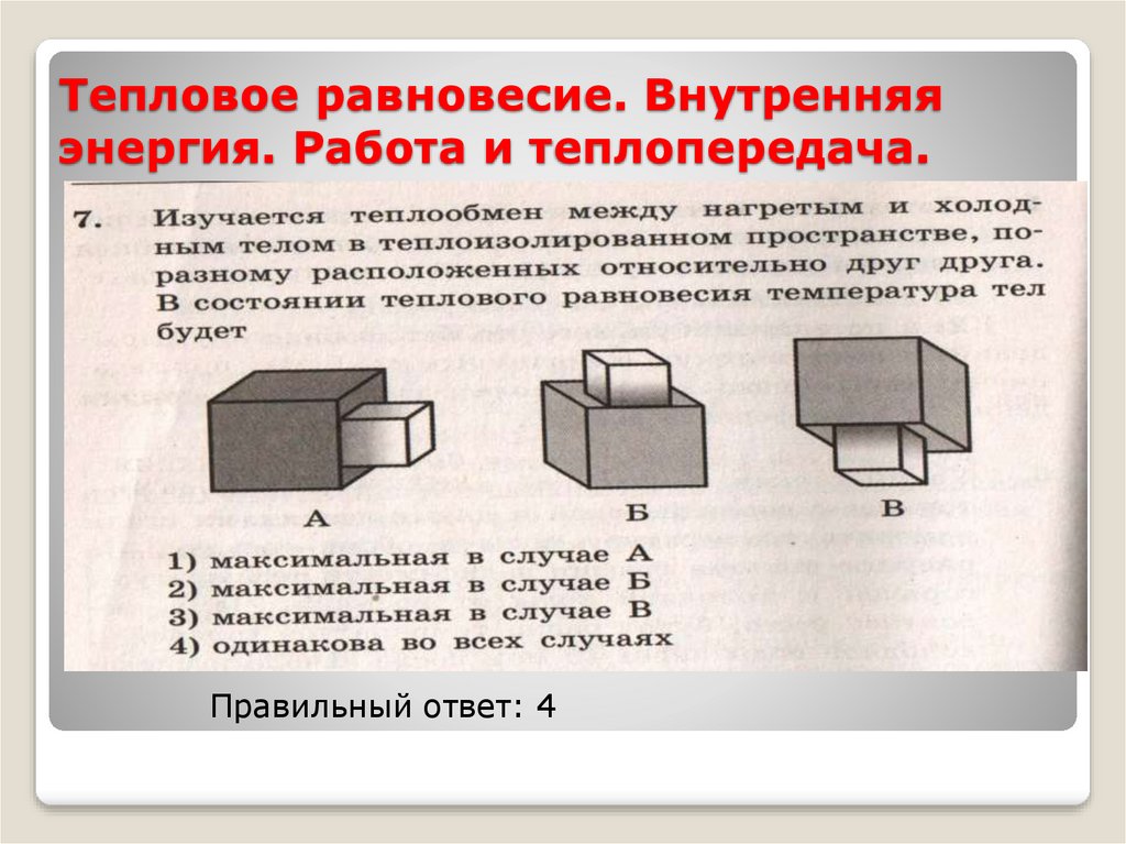 Тепловое равновесие. Внутренняяэнергия. Работа и теплопередача.