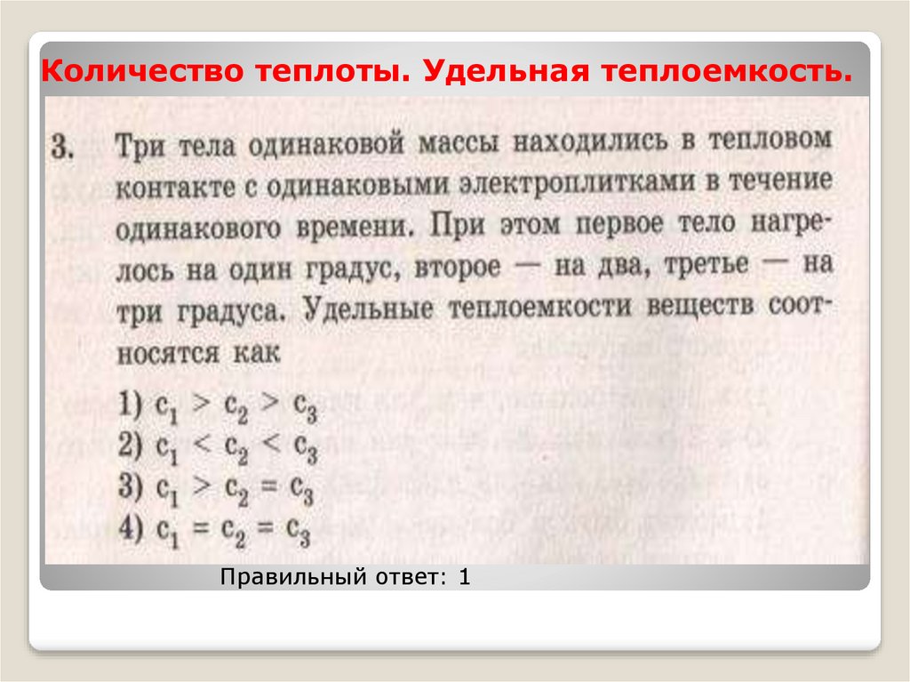 Количество теплоты. Удельная теплоемкость.Правильный ответ: 1