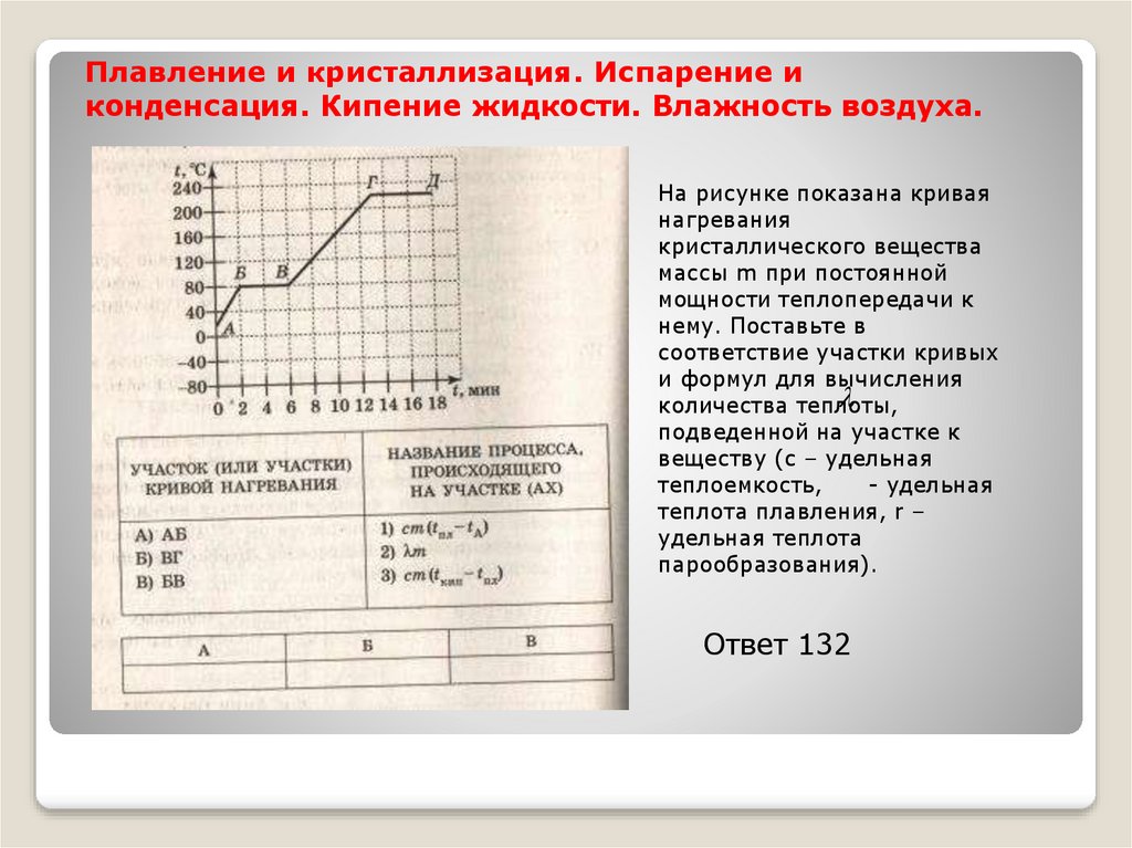 Плавление и кристаллизация. Испарение иконденсация. Кипение жидкости. Влажность воздуха.