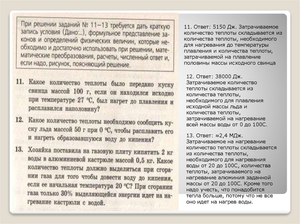 11. Ответ: 5150 Дж. Затрачиваемоеколичество теплоты складывается из