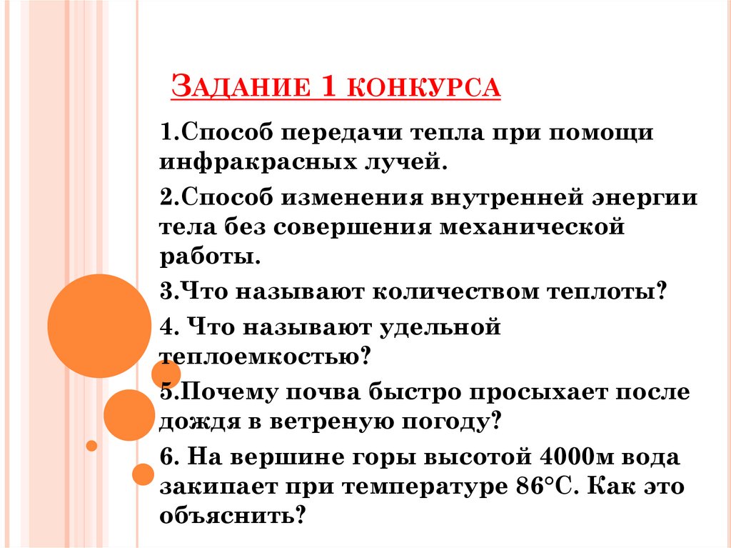 ЗАДАНИЕ 1 КОНКУРСА1.Способ передачи тепла при помощи