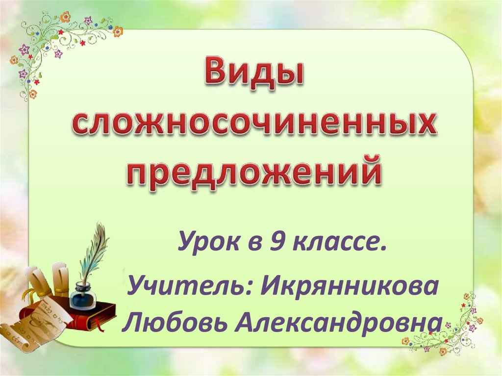 Виды сложносочиненных предложений. Урок в 9 классе