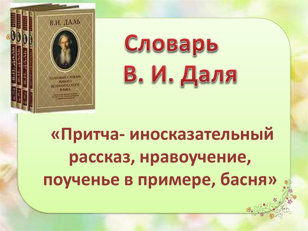 «Притча- иносказательныйрассказ, нравоучение,