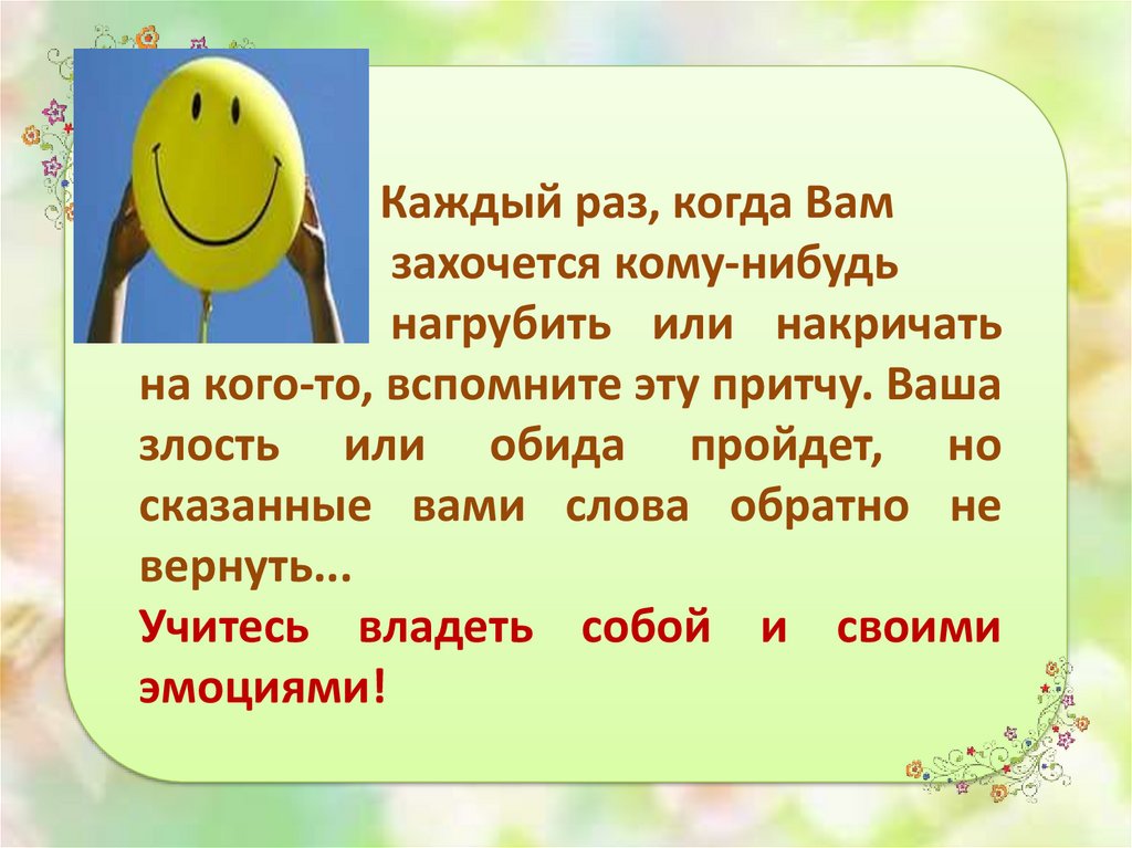 Учитесь владеть собой и своими