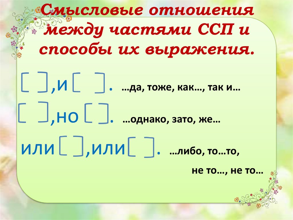Смысловые отношениямежду частями ССП и