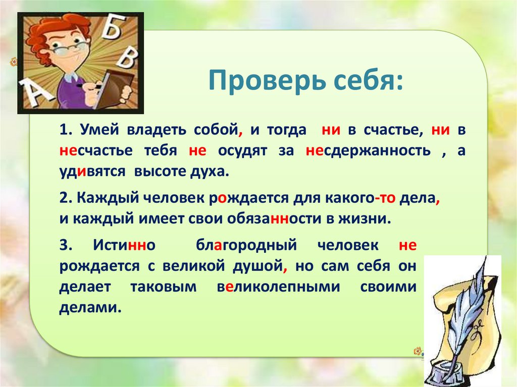 Проверь себя:1. Умей владеть собой, и тогда ни в счастье, ни в