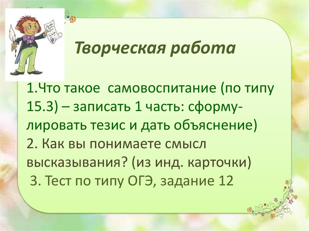 Творческая работа1.Что такое самовоспитание (по типу