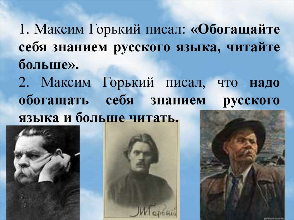 1. Максим Горький писал: «Обогащайтесебя знанием русского языка, читайте