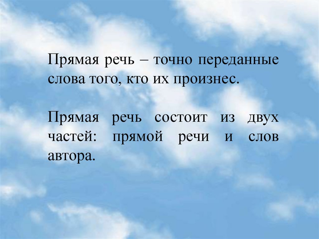 Прямая речь – точно переданныеслова того, кто их произнес.