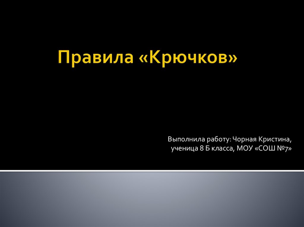Выполнила работу: Чорная Кристина,ученица 8 Б класса, МОУ «СОШ №7»