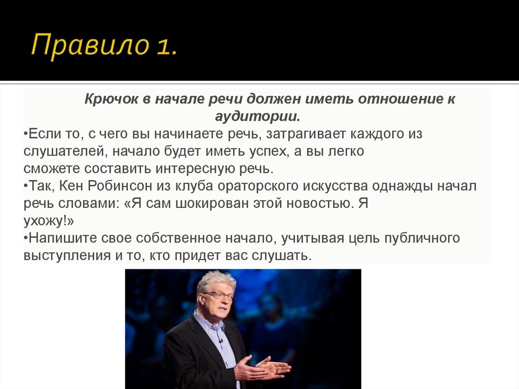 •Так, Кен Робинсон из клуба ораторского искусства однажды начал