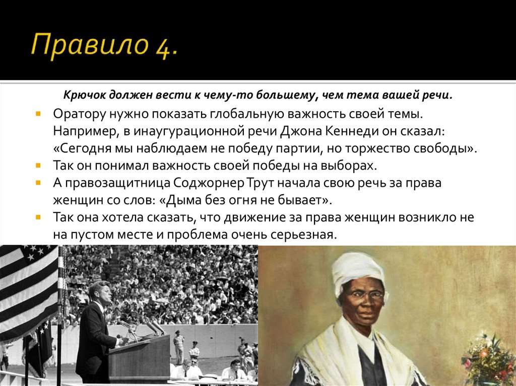 Крючок должен вести к чему-то большему, чем тема вашей речи.Оратору нужно показать глобальную важность своей темы.