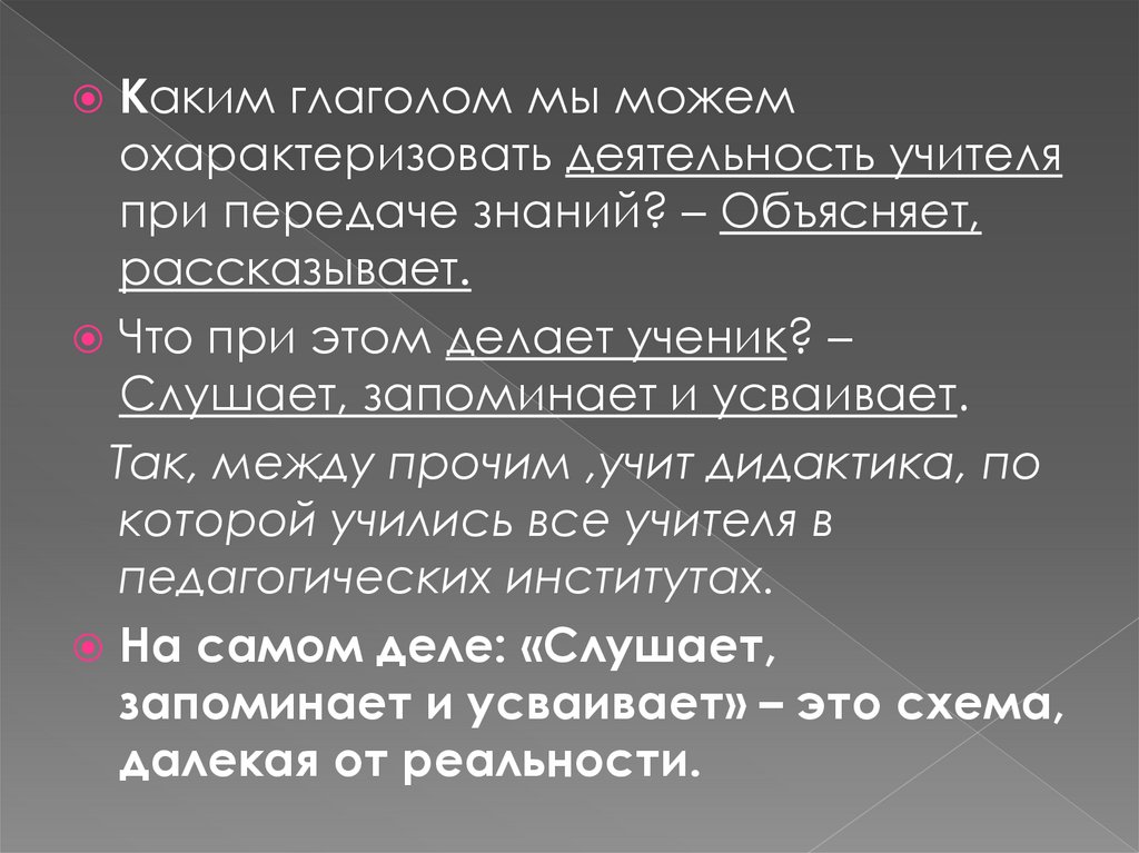 Каким глаголом мы можемохарактеризовать деятельность учителя