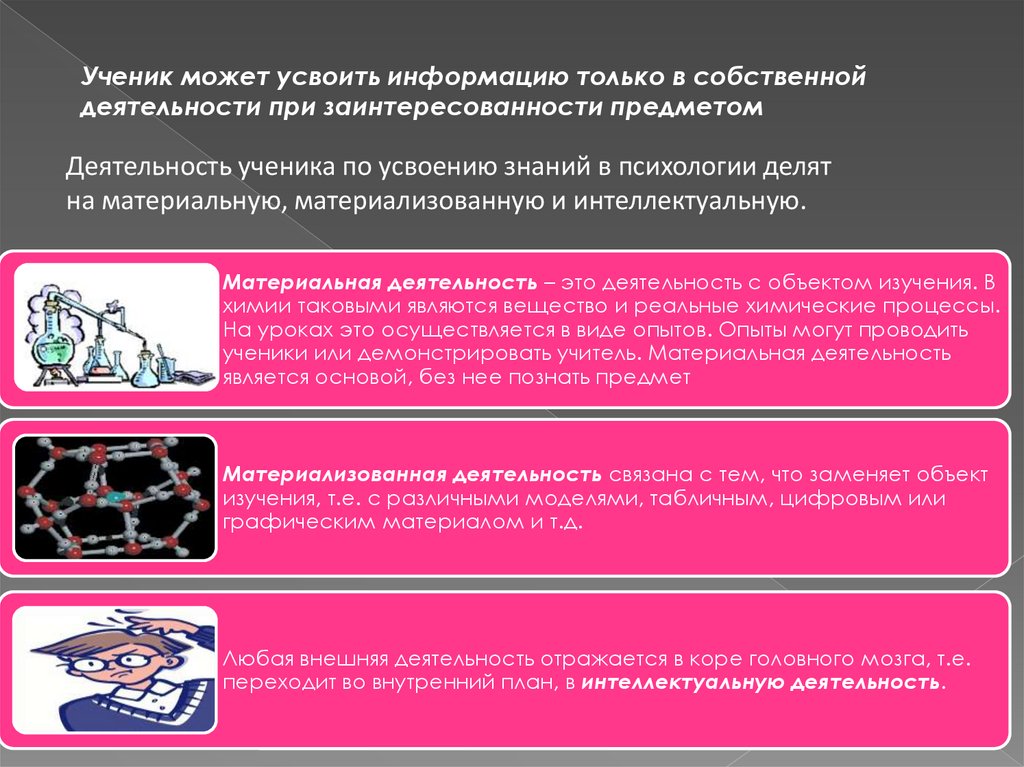 Ученик может усвоить информацию только в собственнойдеятельности при заинтересованности предметом