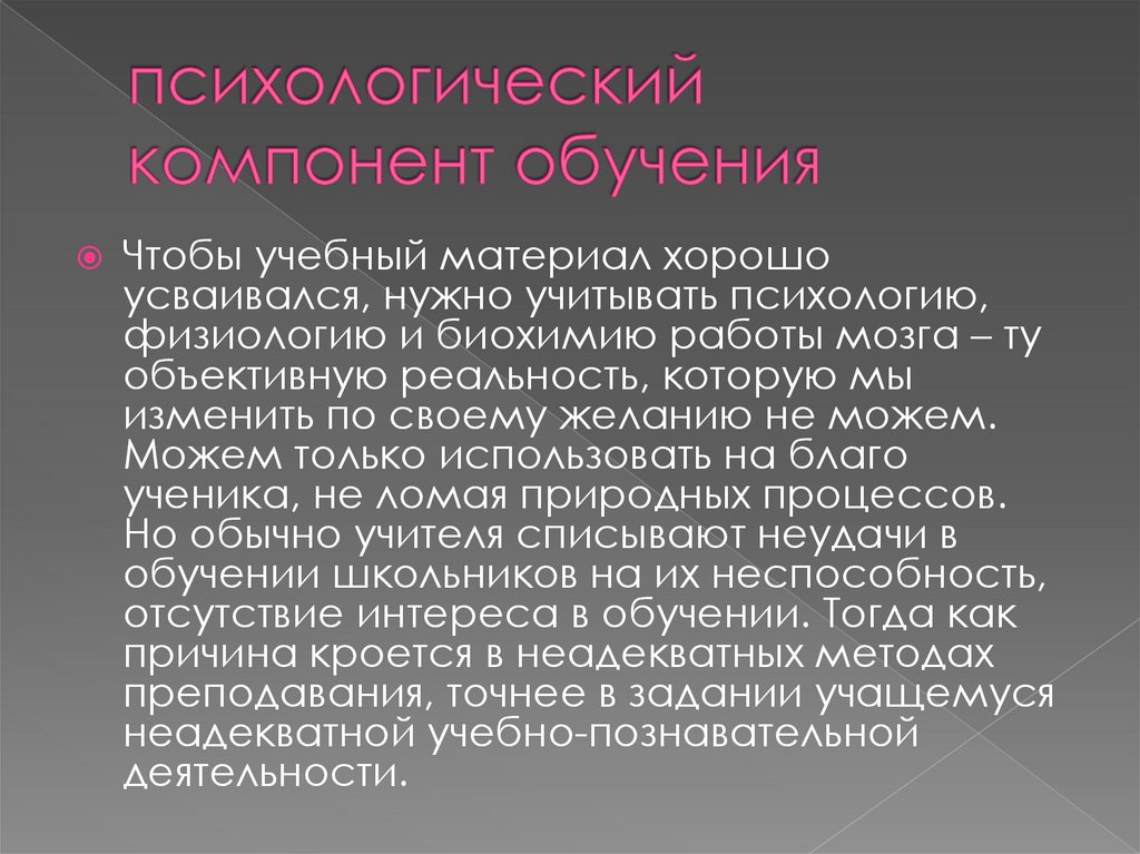 Чтобы учебный материал хорошоусваивался, нужно учитывать психологию,