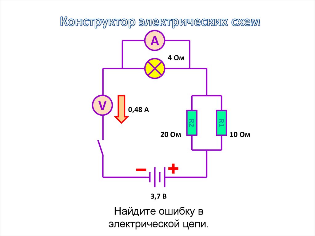 Найди ошибку в электрической цепи.