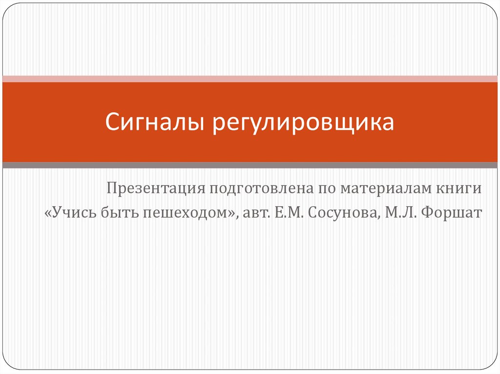 Презентация подготовлена по материалам книги«Учись быть пешеходом», авт. Е.М. Сосунова, М.Л. Форшат