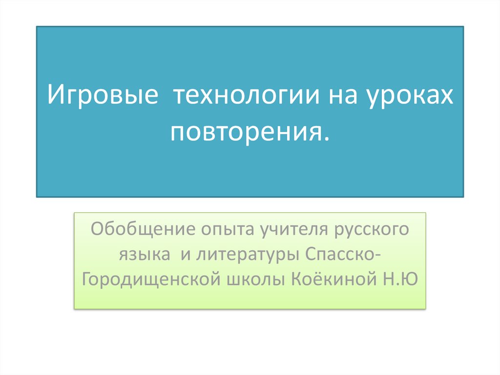 Игровые технологии на уроках повторения. Обобщение опыта учителя русского языка и литературы