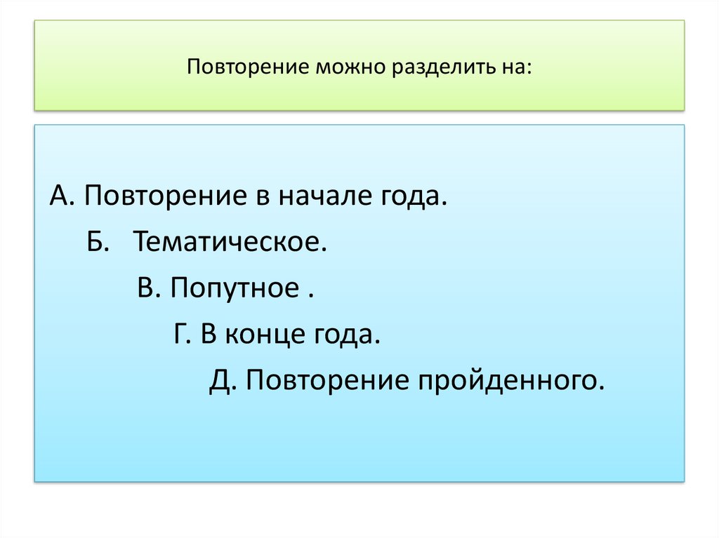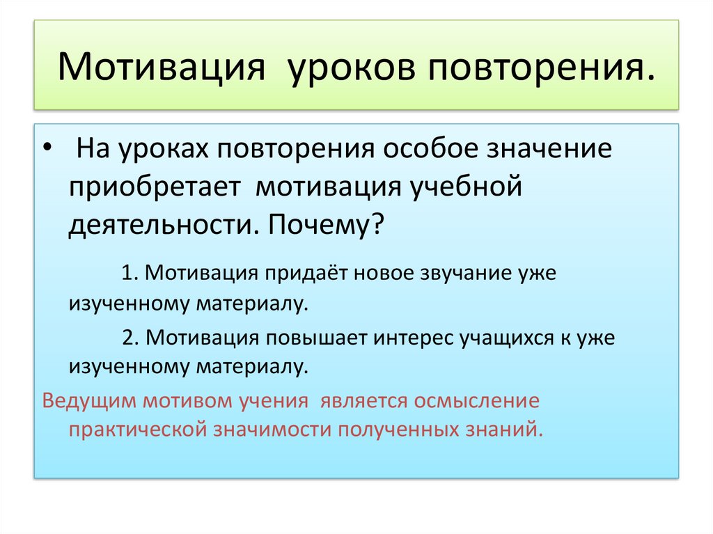 Мотивация уроков повторения.• На уроках повторения особое значение