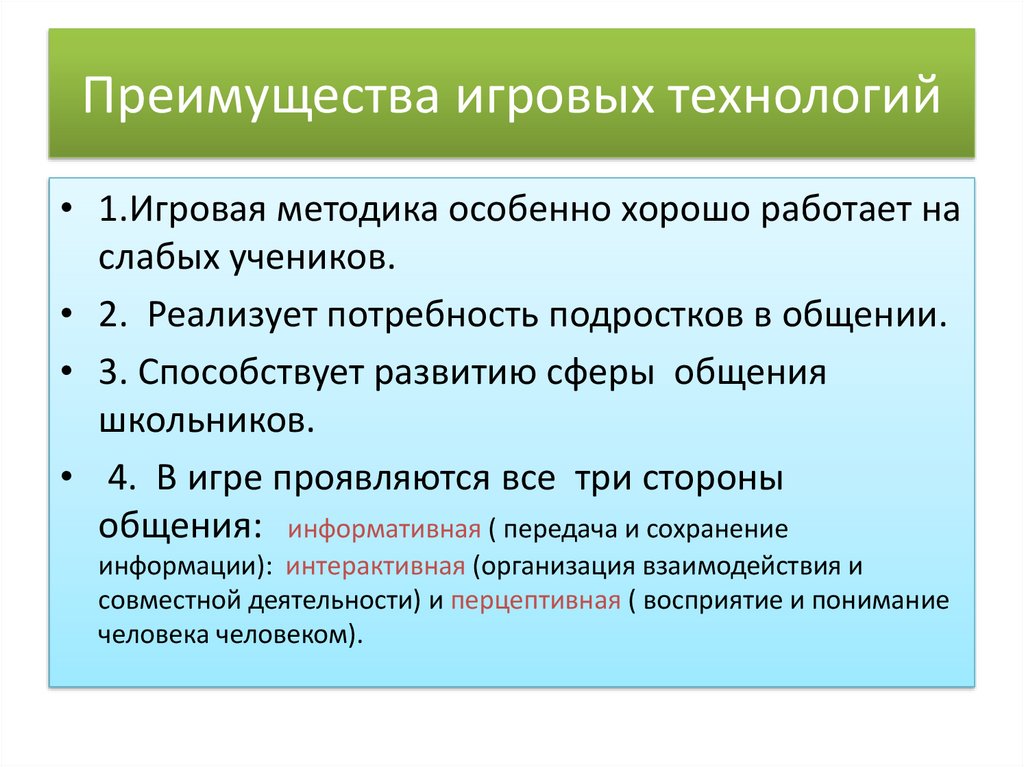 Преимущества игровых технологий• 1.Игровая методика особенно хорошо работает на