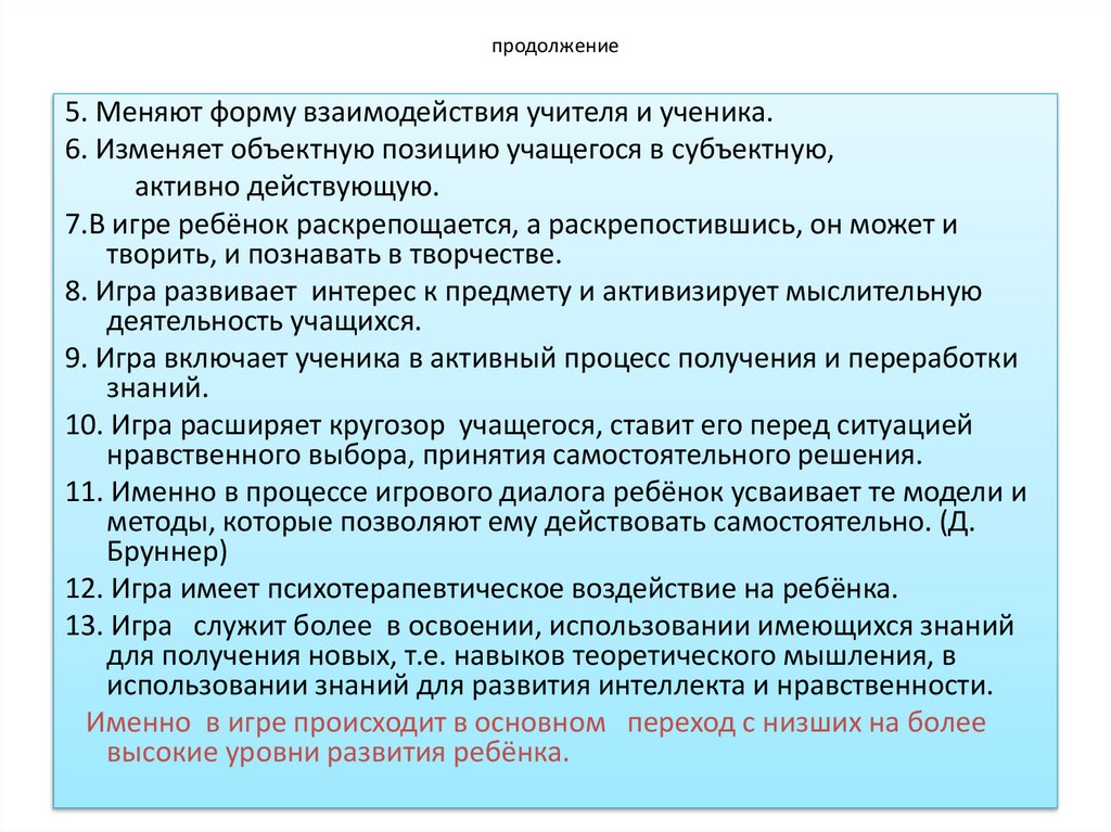 продолжение5. Меняют форму взаимодействия учителя и ученика.