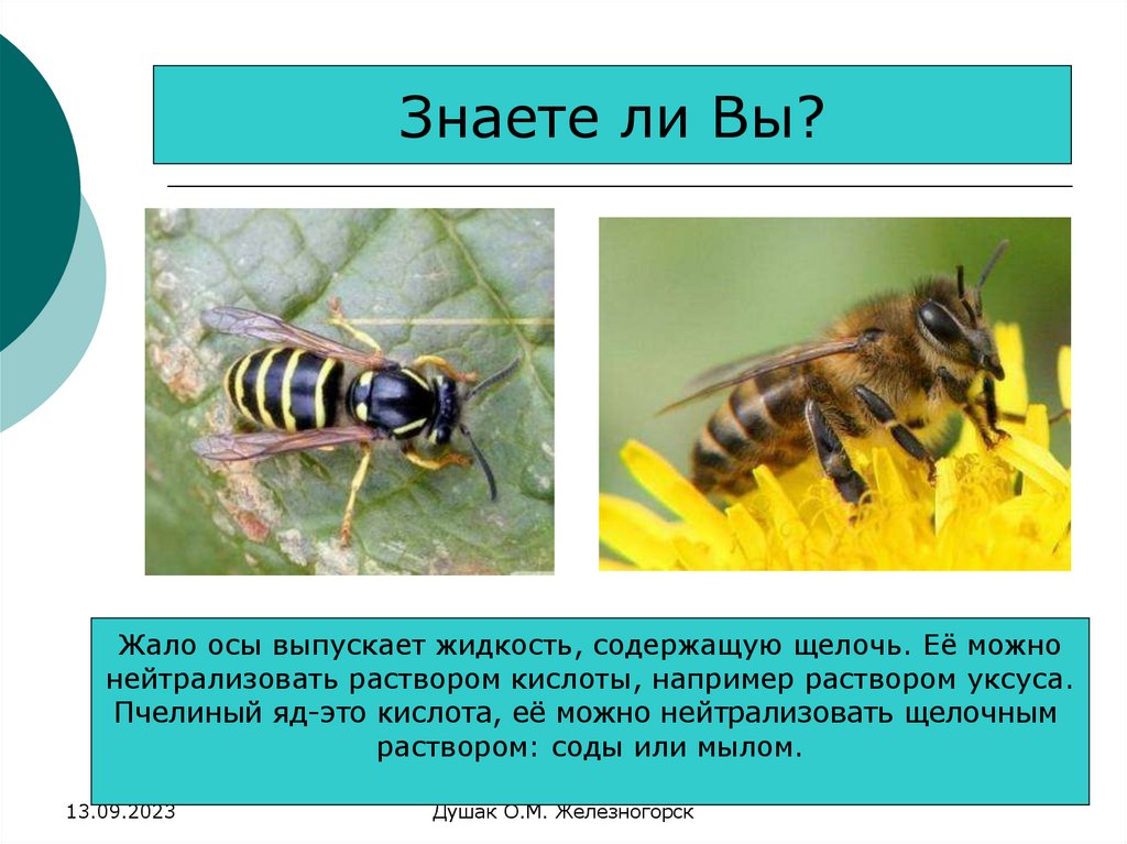 Знаете ли Вы?Жало осы выпускает жидкость, содержащую щелочь. Её можно