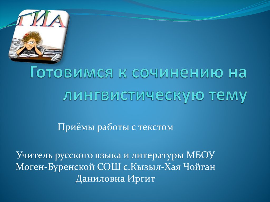 Приёмы работы с текстомУчитель русского языка и литературы МБОУ