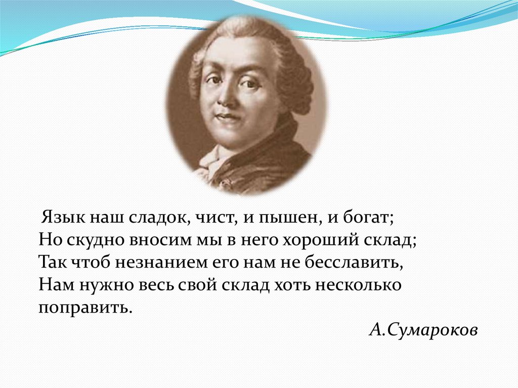 Язык наш сладок, чист, и пышен, и богат;Но скудно вносим мы в него хороший склад;
