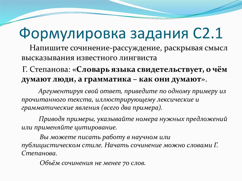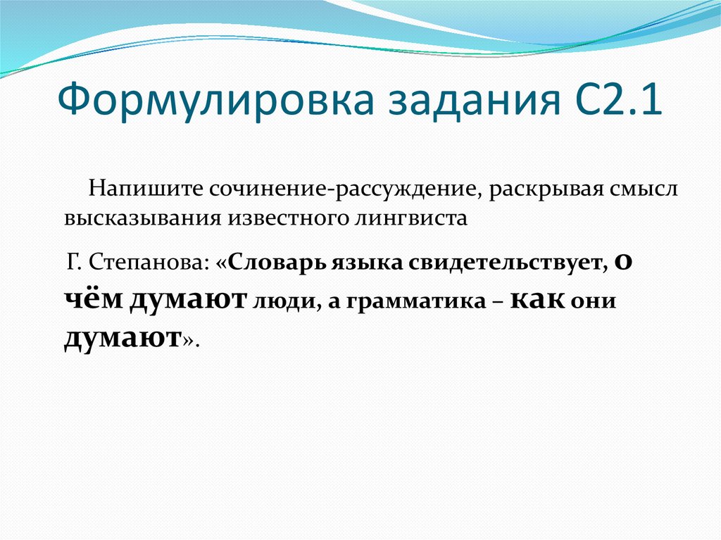 Формулировка задания С2.1Напишите сочинение-рассуждение, раскрывая смысл