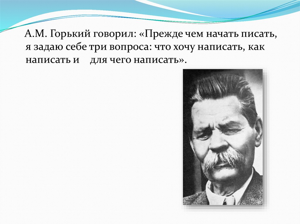 А.М. Горький говорил: «Прежде чем начать писать,я задаю себе три вопроса: что хочу написать, как