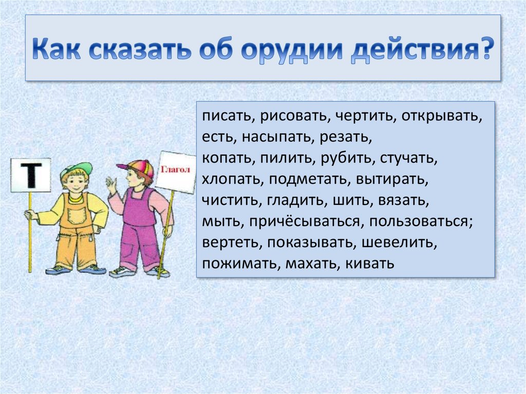 писать, рисовать, чертить, открывать,есть, насыпать, резать,
