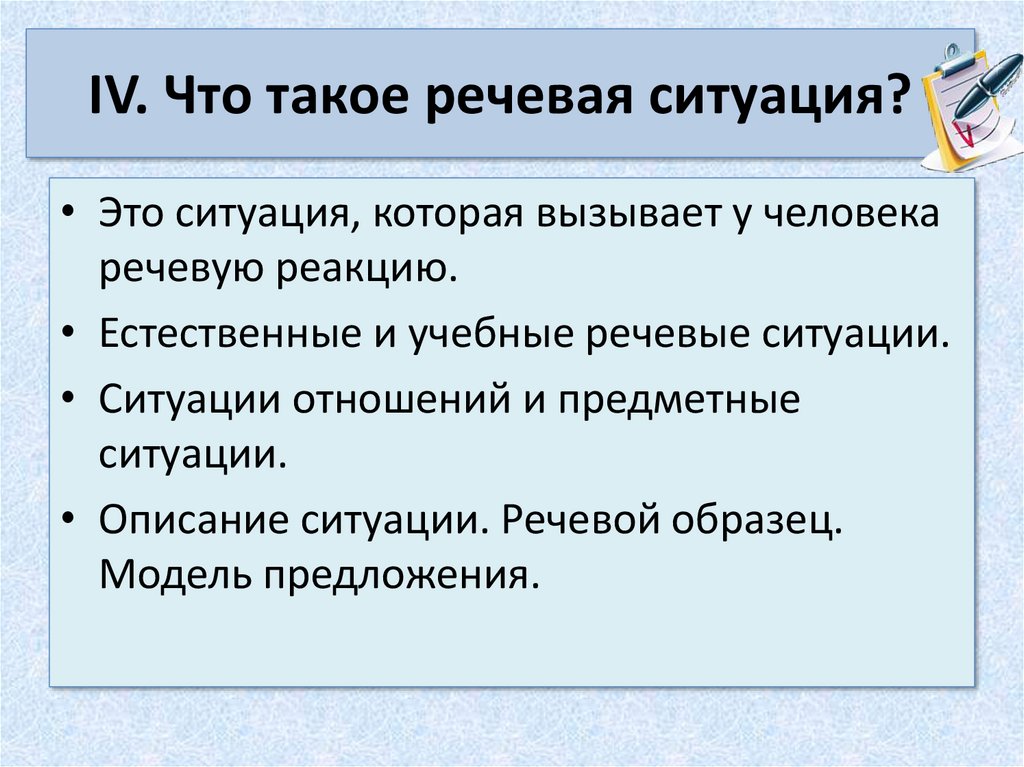 IV. Что такое речевая ситуация?• Это ситуация, которая вызывает у человека