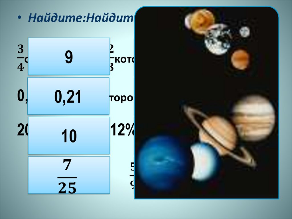 Нахождение дроби от числа. Большое космическое путешествие на планету Нептун