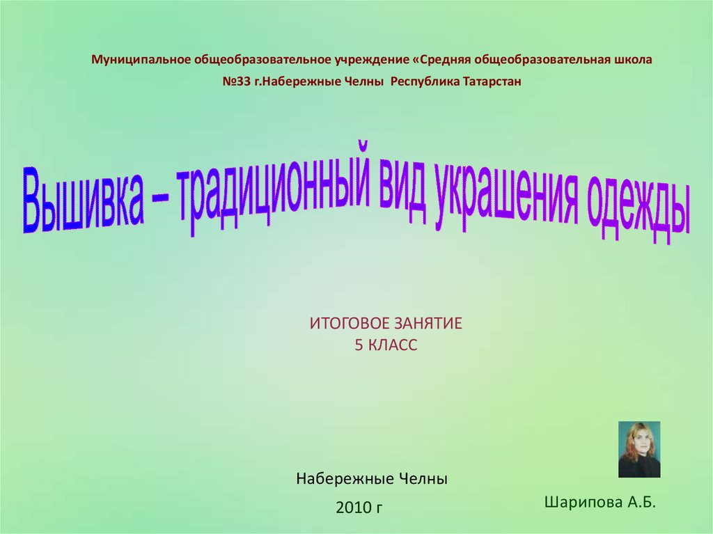 Муниципальное общеобразовательное учреждение «Средняя общеобразовательная школа№33 г.Набережные Челны Республика Татарстан