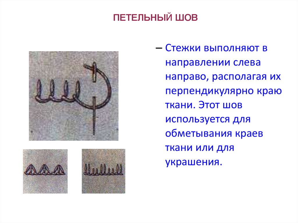 ПЕТЕЛЬНЫЙ ШОВ– Стежки выполняют в
