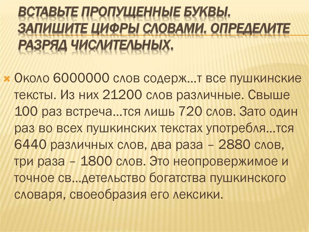 ВСТАВЬТЕ ПРОПУЩЕННЫЕ БУКВЫ.ЗАПИШИТЕ ЦИФРЫ СЛОВАМИ. ОПРЕДЕЛИТЕ
