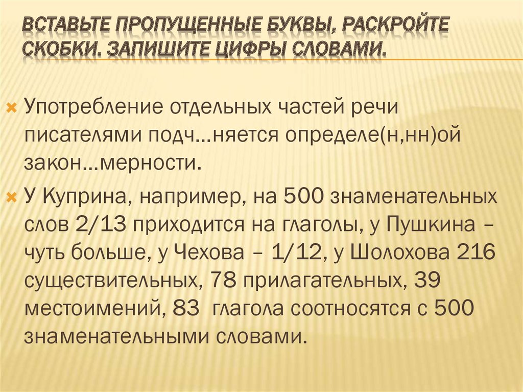 ВСТАВЬТЕ ПРОПУЩЕННЫЕ БУКВЫ, РАСКРОЙТЕСКОБКИ. ЗАПИШИТЕ ЦИФРЫ СЛОВАМИ.