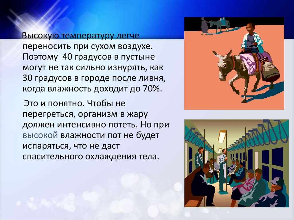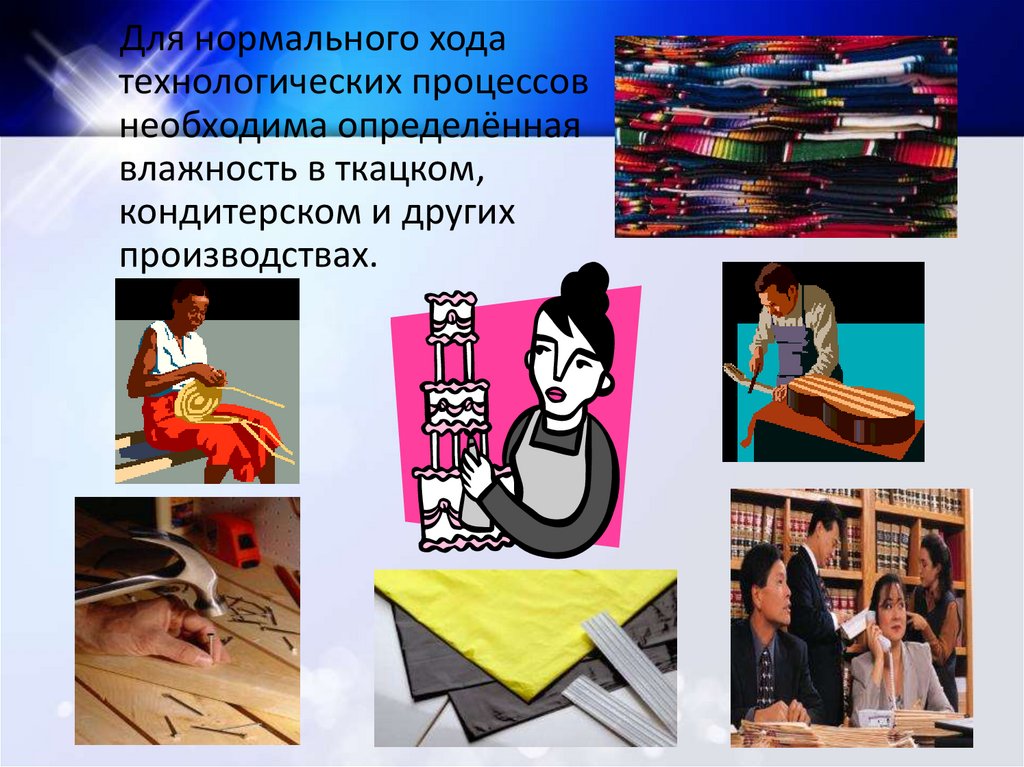 От влажности зависит интенсивностьиспарения влаги с поверхности кожи человека.