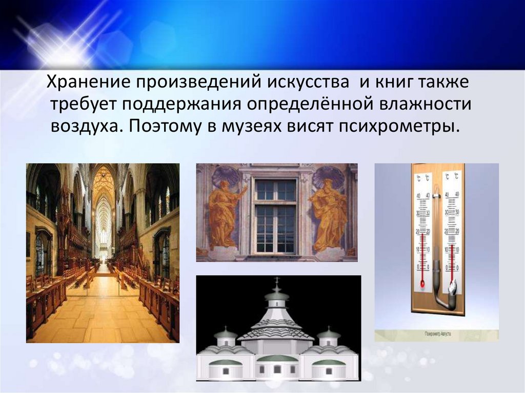 Хранение произведений искусства и книг такжетребует поддержания определённой влажности