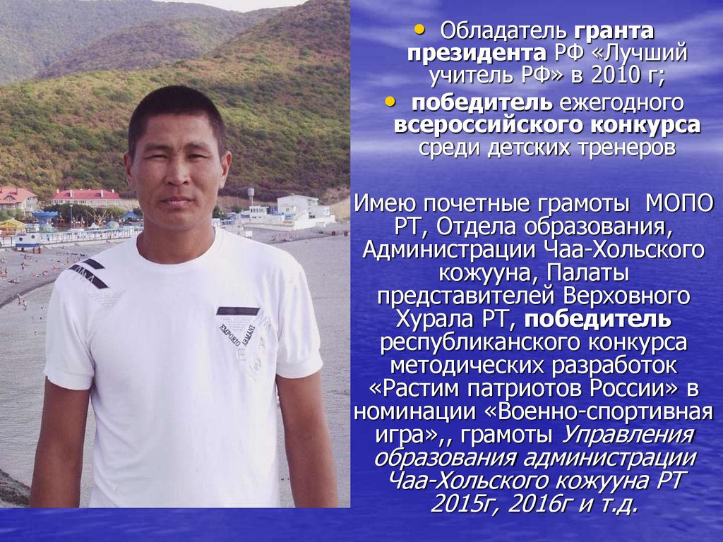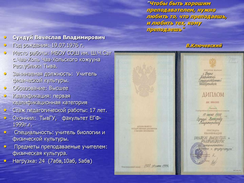 Окончил: ТывГУ, факультет ЕГФ1999г.г.