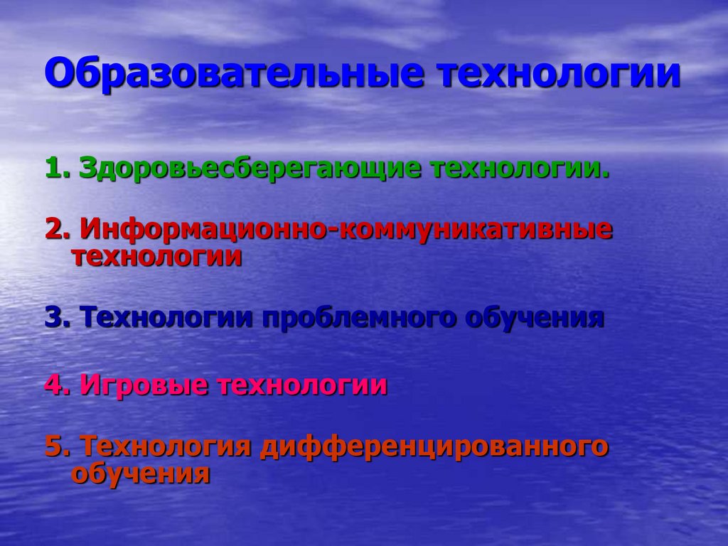 Образовательные технологии1. Здоровьесберегающие технологии.